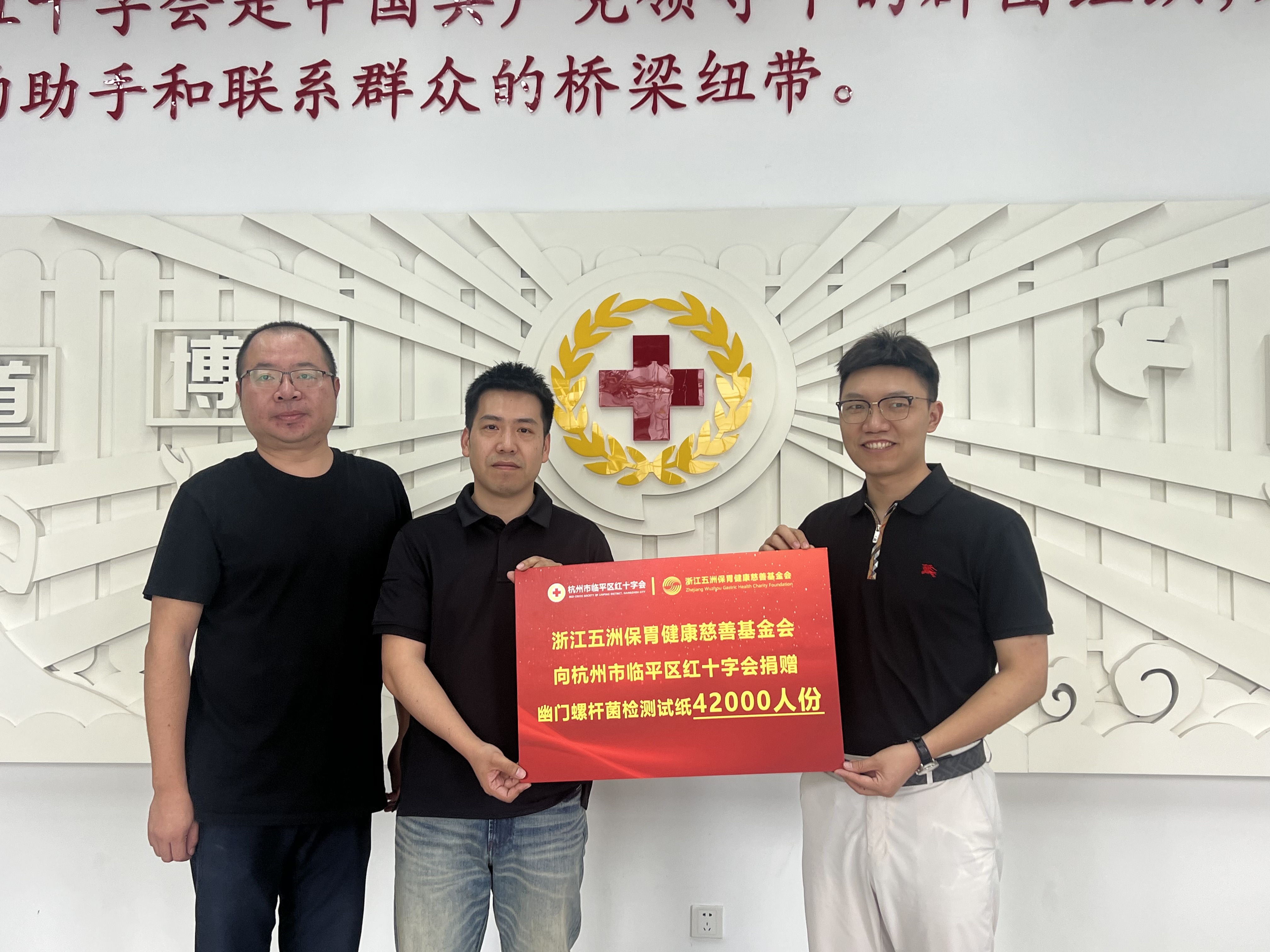 基金會(huì)向臨平區(qū)紅十字會(huì)捐贈(zèng)42000份口腔幽門(mén)螺桿菌檢測(cè)試紙,用于轄區(qū)內(nèi)居民體檢和60歲以上老年人胃癌早篩的免費(fèi)篩查